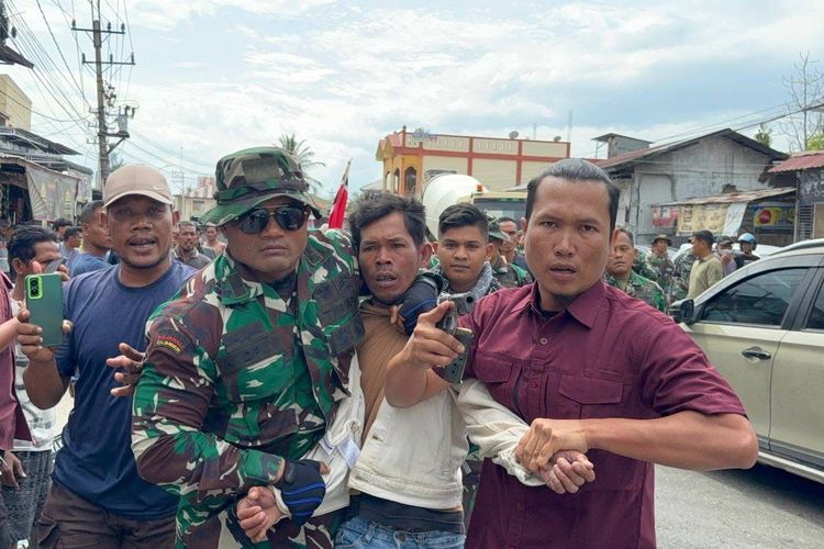 ”Dalam proses tersebut terjadi adu mulut, dan saat pemeriksaan terhadap salah satu orang dalam kelompok ditemukan 1 pucuk senjata api jenis Colt M1911 beserta amunisi, magazen, dan senjata tajam. Yang bersangkutan kemudian diamankan dan diserahkan kepada pihak kepolisian untuk diproses sesuai hukum,” tambahnya.