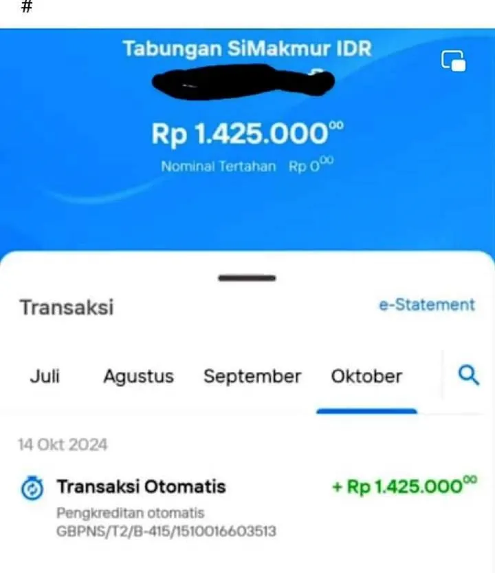 - Jika insentif sudah masuk, umumnya akan ada transaksi masuk dengan keterangan bahwa dana yang masuk berasal dari Kemenag atau instansi terkait.